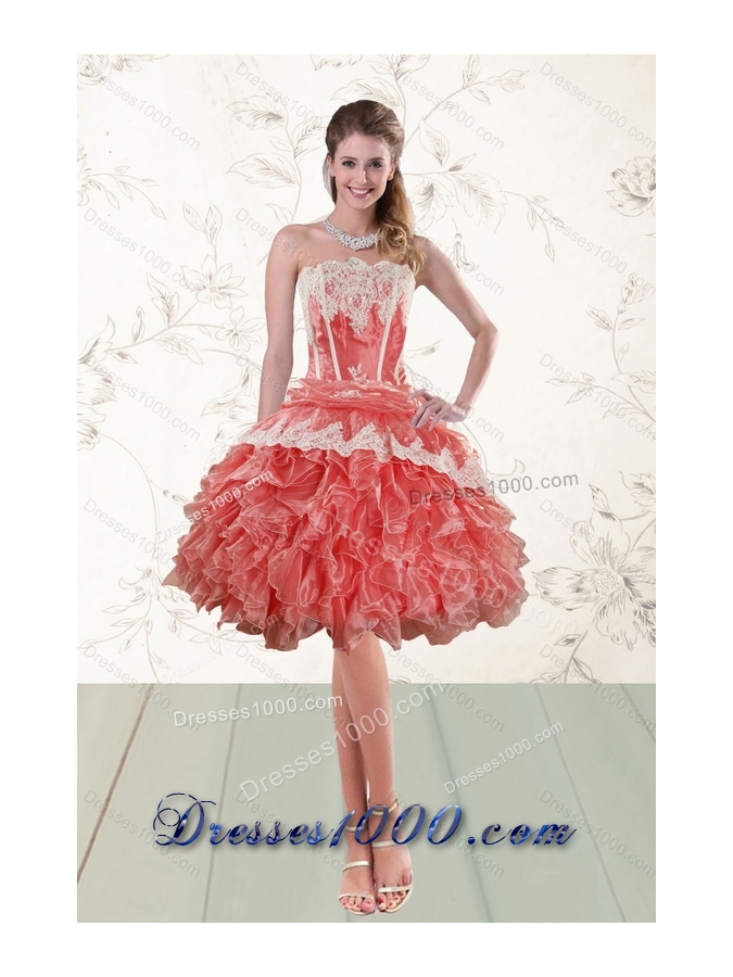 2015 Elegant Ruffled Strapless Short Prom Gown in Watermelon