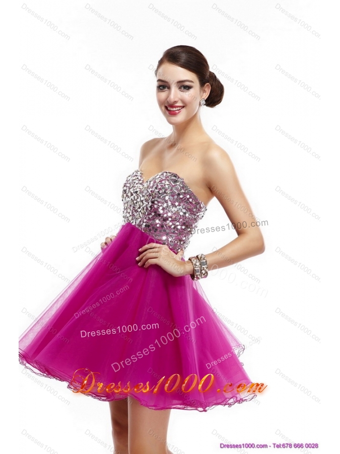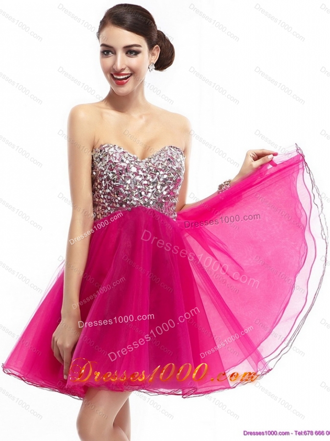 Sexy Fuchsia Sweetheart Prom Dresses with Rhinestone